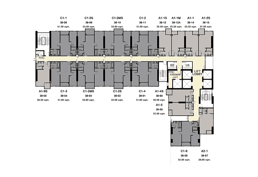 จำนวนชั้น (แบ่งเป็น 3 โซน) โซน A จำนวน 38 ชั้น